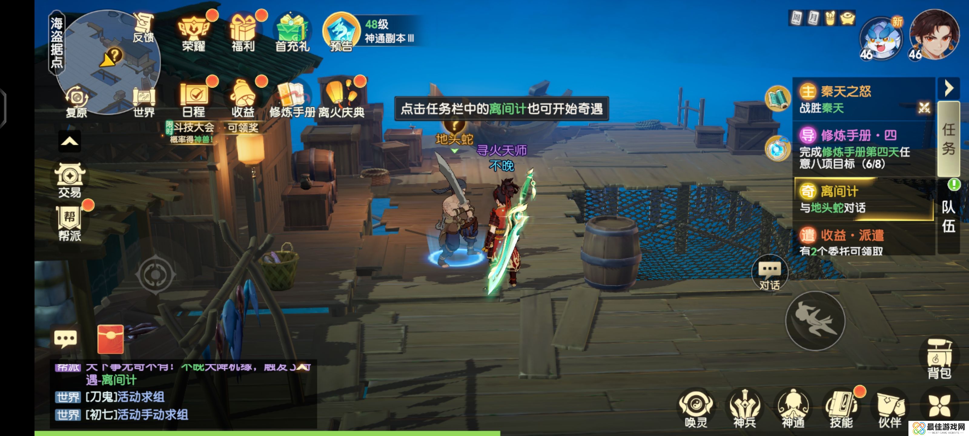 玩家需要来到海盗据点地图,点击地头蛇选择【抓住机会】可以触发离间计奇遇任务,