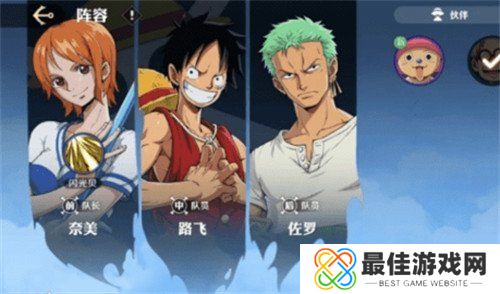 路飞作为第一个角色,其持续输出能力较强,与索隆的技能相互搭配,可打出大范围伤害。