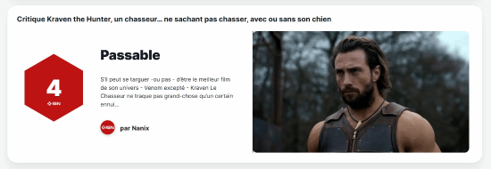 索尼最新超级英雄电影《猎人克莱文》在法国评测中遭遇滑铁卢,IGN法国分部为其打出了4分的低分,评价颇为苛刻。