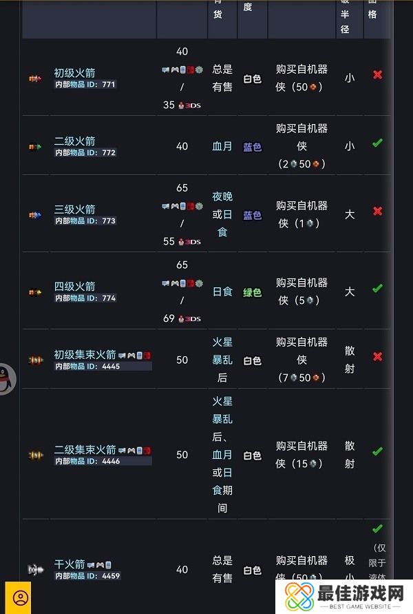 泰拉瑞亚火箭弹种类购买获取方法大全 具体介绍