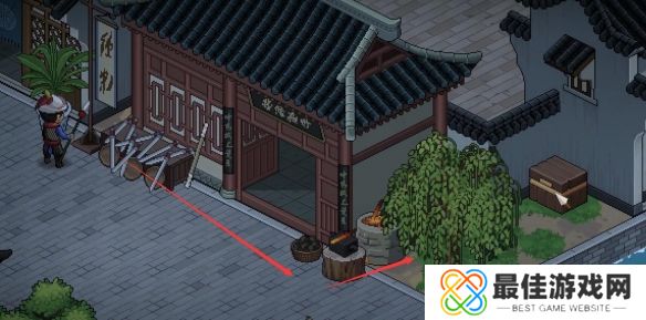 2、去【铁匠铺】然后往铁匠铺前面走,在树旁边找到线索;