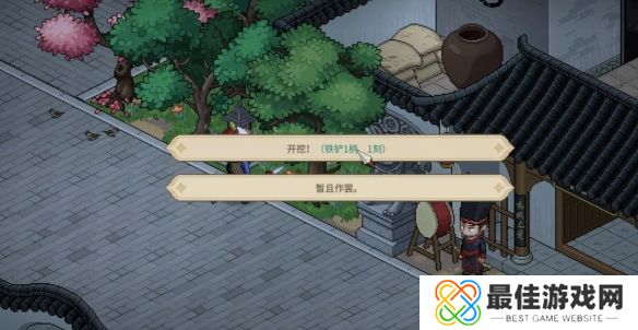 4、去【衙门】来到树下选择【开挖】获得碎羊皮完成任务。
