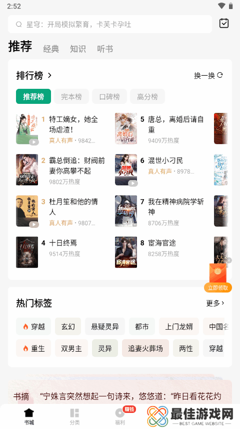 3、品类齐全,想看就看:网罗了各类精品书籍,从玄幻到言情,从历史到科幻,分类详尽,确保你能轻松找到感兴趣的内容,随时随地开启阅读之旅。