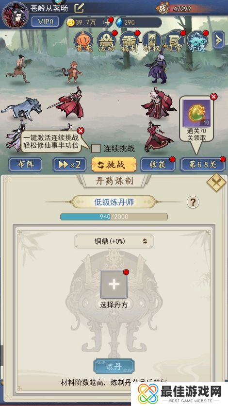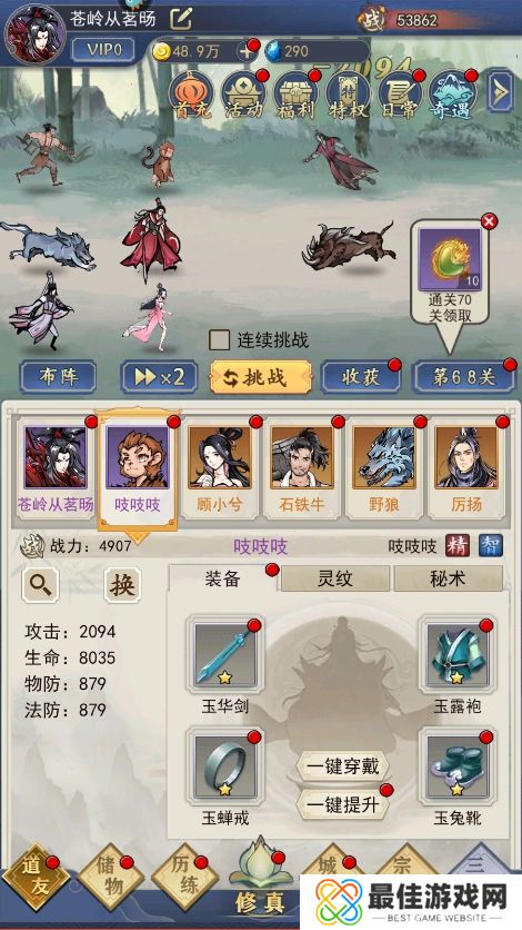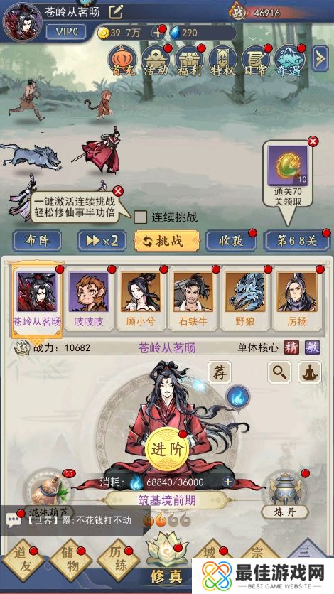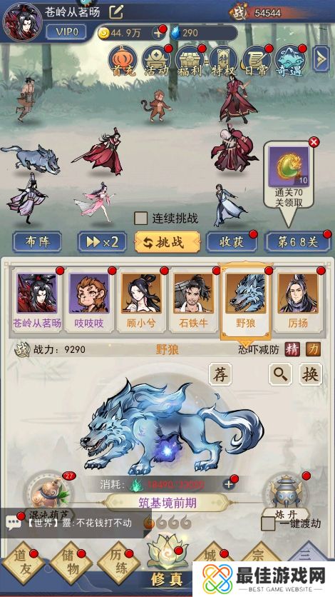 7、培养完成后我们就可以回到修真界面继续挑战关卡了