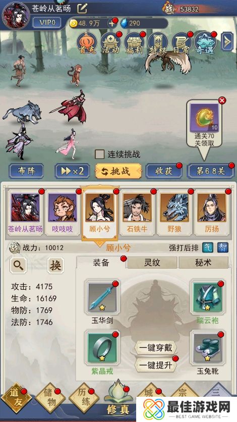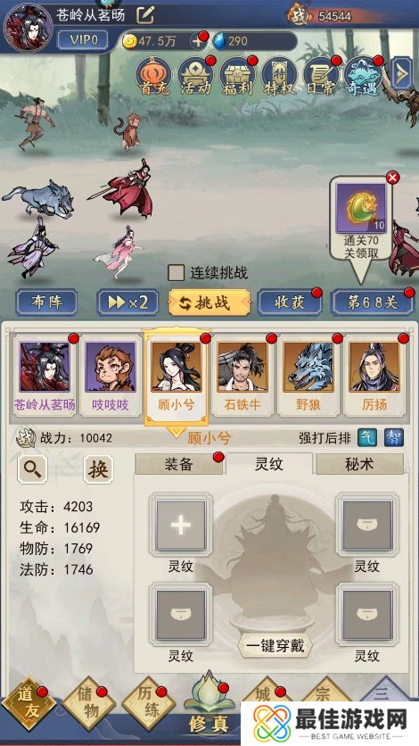 6、到了后期玩家可以通过闯关或者历练副本获得灵纹,获取后也可以为道友穿戴上
