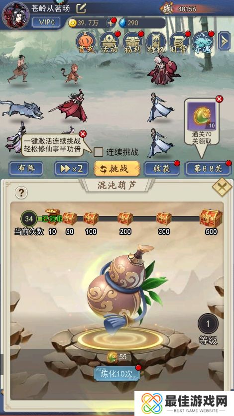 3、除此之外,还可以通过混沌葫芦进行强化,这样也可以开启宝箱获得丰厚的奖励