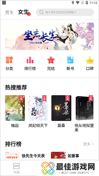 2、书库页面:软件中所有的书籍都可以在这里阅读到,对所有的书籍进行了分类和排行;