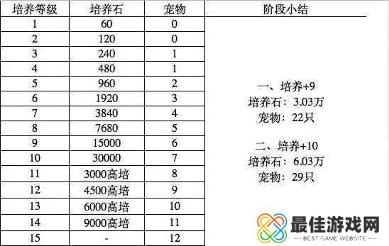 三、培养所需消耗精灵数量数据展示(可能有误差,但不会太大)。