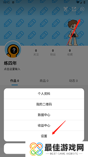 1、打开创游世界,点击底端的“我的”,然后点击右上角的设置按钮,点击“设置”选项。