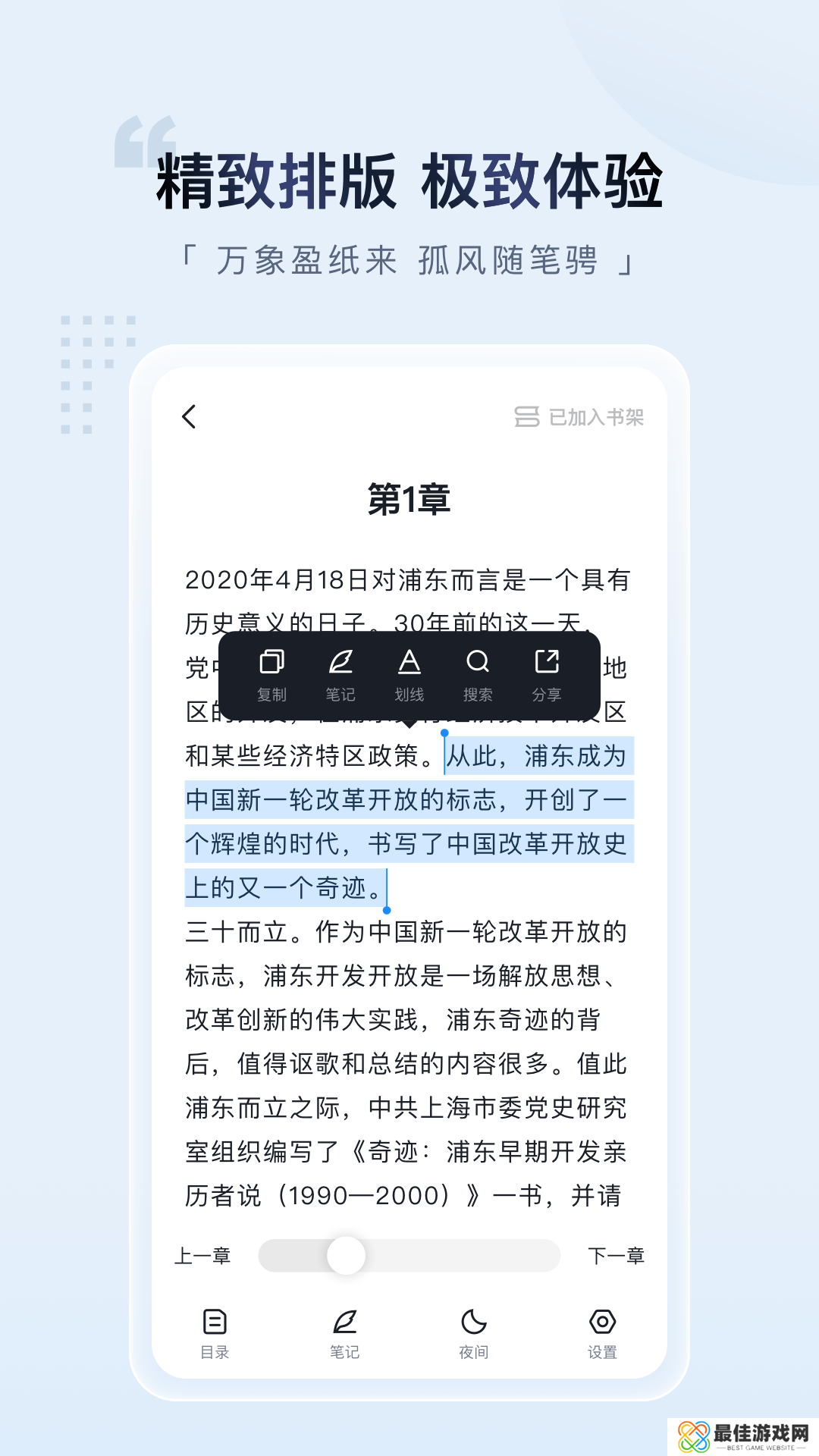 3.个性化界面:提供多种个性化界面选项。用户可以根据自己的喜好选择不同的界面风格,让阅读更加个性化。