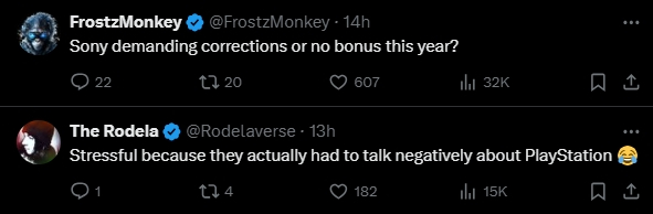 网友问道“索尼今年要求更正还是不发奖励?”“压力很大,因为他们不得不面对PS5 Pro进行负面评论”“为什么?”