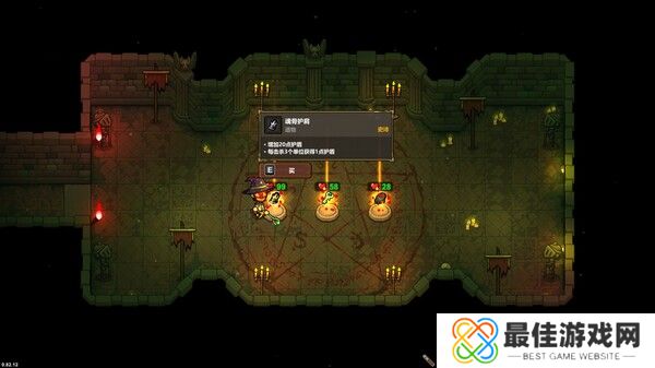 在房间的选择优先级上“商店”最高,我们需要尽可能多买法杖,因为遗物效果法杖上会自动装备“守护杖灵”,并且将每一个法杖上都装备法术飞弹后,法杖的数量越多,我们能够造成的伤害也就越多。