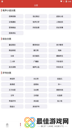 老白听书使用说明1、下载并安装好软件之后,在首页可以点击上方的菜单栏,可以进行小说、文学作品的查看。