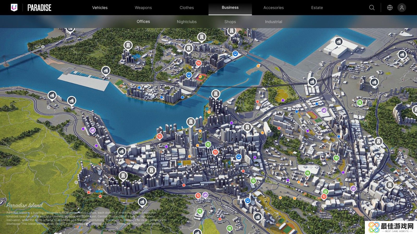 基础设施与自然: 从海洋到繁忙的城市,拥有独特的场所,如警署、银行、航空港和商店,每个场所都提供各种各样的活动。