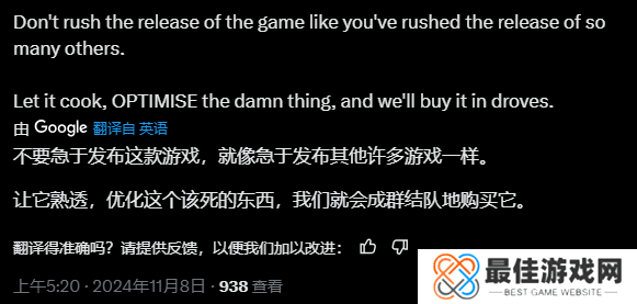 对此,大部分玩家表示根本没玩够!试图和官方商量在正式发售前再进行一次公开测试。除此外,还有很多网友吐槽,能不能在正式发布之前把优化做好,表示自己的设备根本无法正常游玩这款游戏。