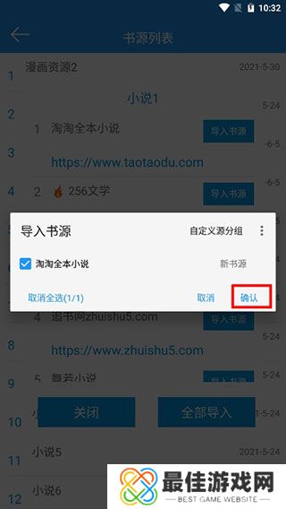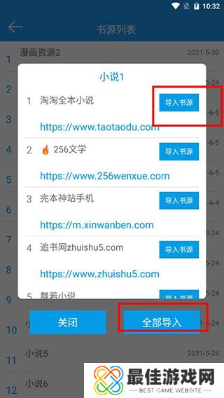 3、选择书源列表任意一个书源集合,或者点击全部导入