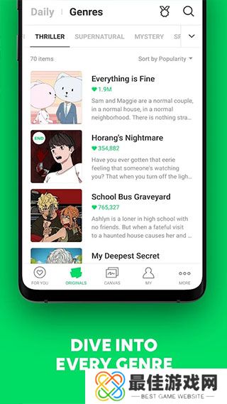 Webtoon 官网免费入口测评Webtoon 官网免费入口是一款在国外非常流行的阅读漫画的手机应用。Webtoon 官网免费入口还为创作者提供了一个个人创作平台。只要他们提交并接受内部团队审查,无论是漫画家还是新人,他们都有机会被列入名单。你还在无聊和做白日梦吗?然后快速下载Webtoon 官网免费入口,它看起来很棒!