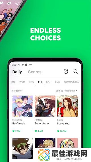 Webtoon 官网免费入口特点1.提供的免费漫画可以直接在手机或平板电脑上观看,无需下载其他电子书阅读器。下载漫画后,可以离线阅读30天,