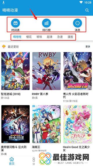 嘀嘀动漫怎么用1、进入首页了,首页为大家展示了时间表、排行榜、消息等内容,在下面还为大家提供了很多中资源动漫,比如嘀哩哩、樱花等等,大家可以选择切换观看;