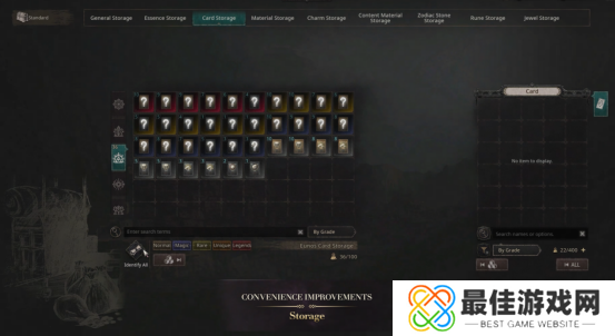 为丰富玩家游戏体验,本次更新围绕“便利性"做进一步优化升级。游戏新增内置指南书,可搜索关键词获得教程。优化仓库操作系统,可以一键鉴定仓库里的所有卡片,也可以按照品质一键取出。背包筛选添加词条过滤功能,便于玩家根据所需词条筛选保留道具。