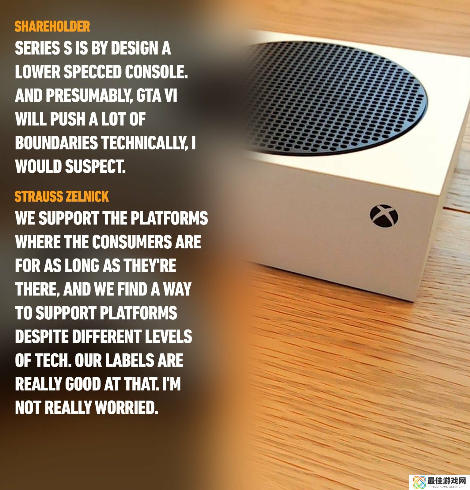 在最近的一次投资者电话会议上,Strauss Zelnick回答了一个关于《GTA6》的Xbox Series S版是否会有阉割的问题,他表示他并不担心这一点。