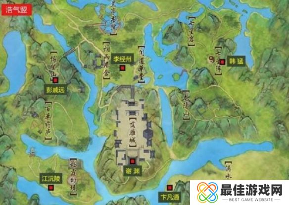 2、然后根据要求寻找图中的卞凡通,江沅陵,彭戚远,李经州,韩猛五个NPC。