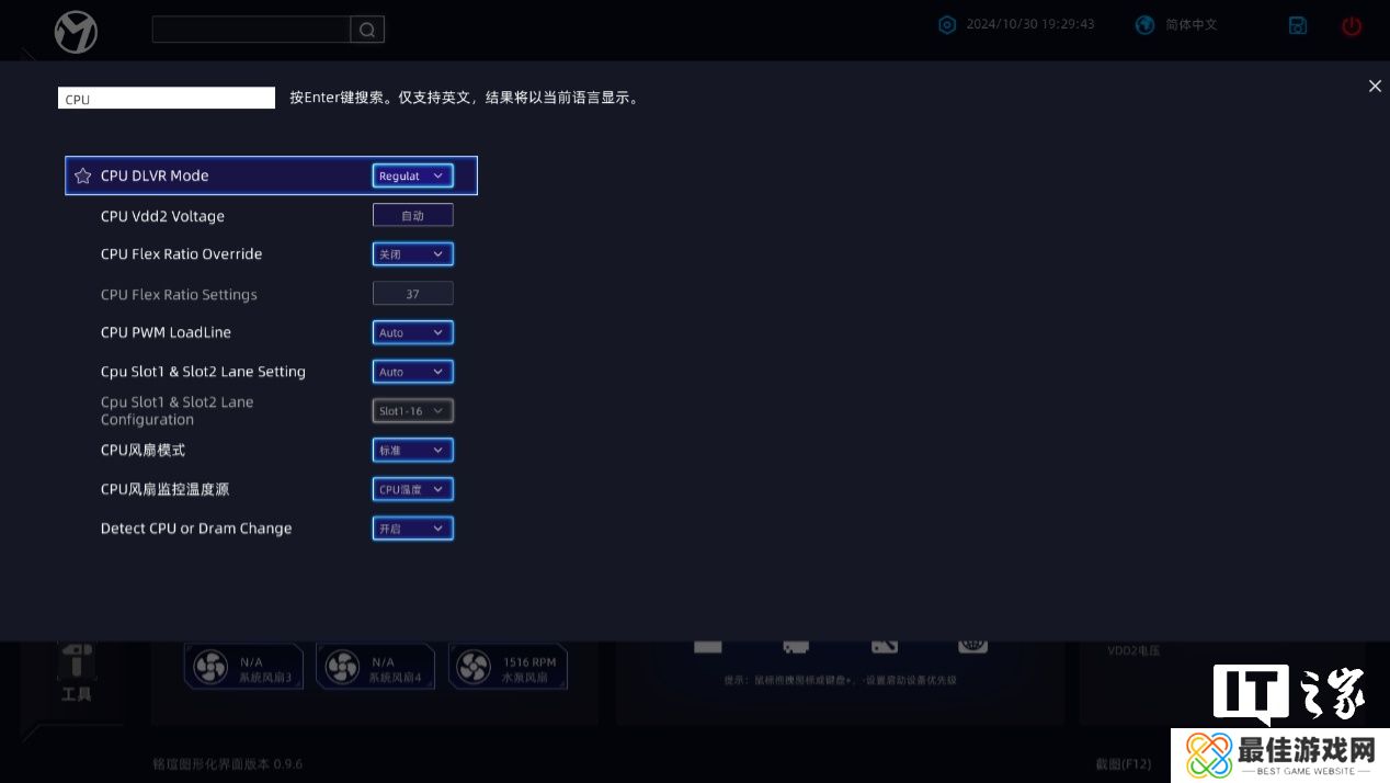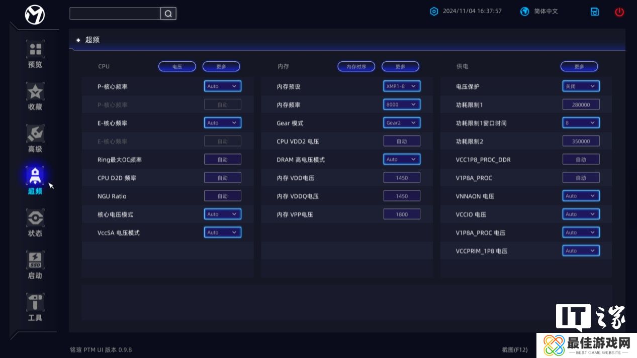 超频标签页的优化深得我心,其设计巧妙地将超频内容细分为 CPU、内存及供电三大模块,使得每个模块的主要超频选项均一目了然,有效避免了用户繁琐的查找过程。