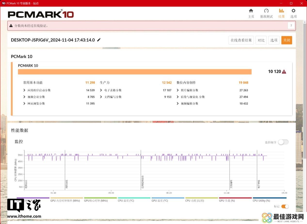 接下来再让我们看看,酷睿 Ultra 9 285K 搭配铭瑄终结者 Z890-A Wi-Fi 主板的生产力表现如何吧。首先是代表综合性能的 PC Mark10 现代办公基准测试,酷睿 Ultra 9 285K 的综合分数为 10120 分,生产力子分数为 12542 分。
