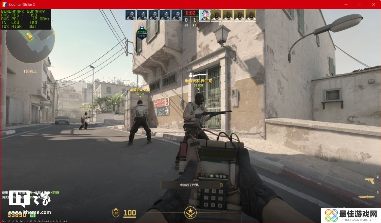 第一款《CS2》,以 1080P 分辨率 + 高画质运行创意工坊测试地图 CS2 FPS BenchMark。酷睿 Ultra 9 285K 游戏平均帧数为 493 帧,1% Low 帧 160 帧。
