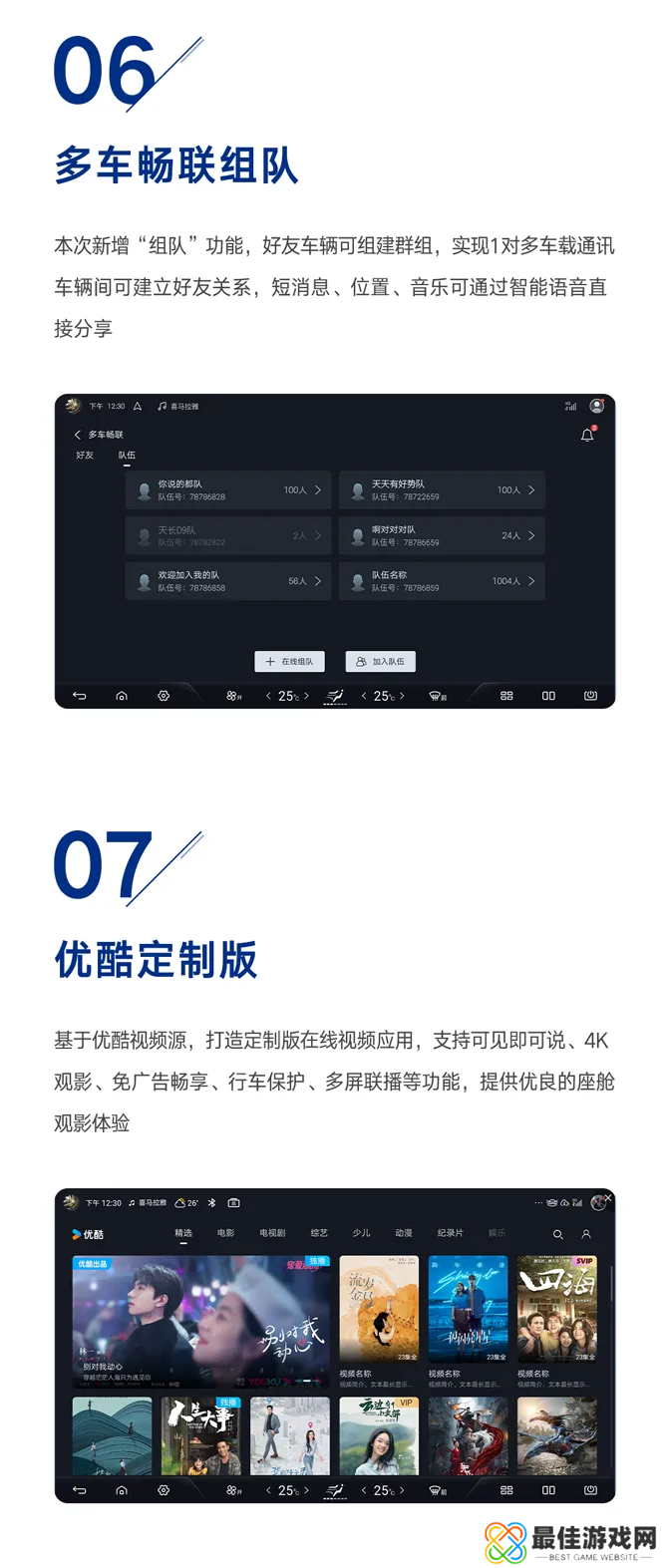 支持可见可说、4K 观影、免广告畅享、行车保护、多屏联播等功能。