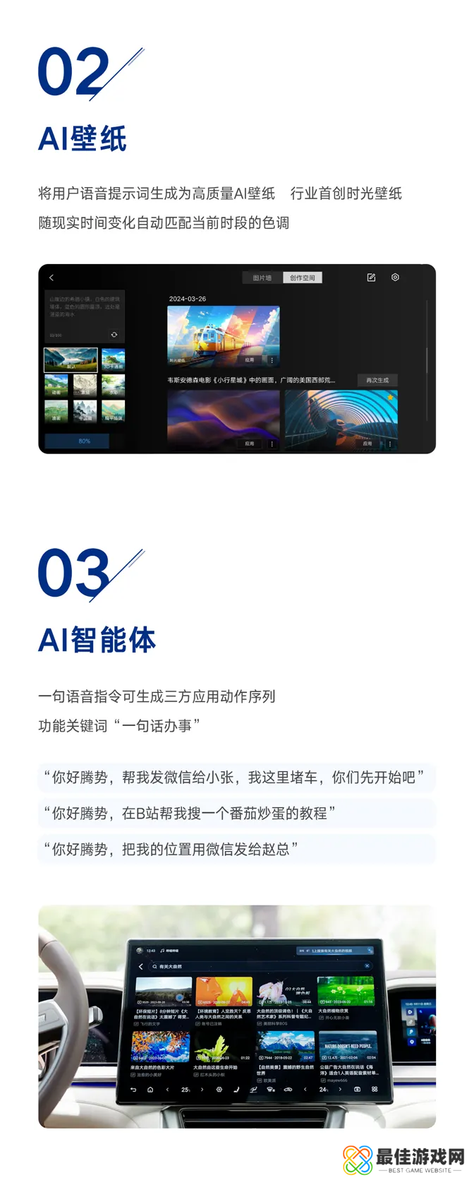 语音指令可生成三方应用动作序列,如“你好腾势,把我的位置用微信发给赵总”等指令。