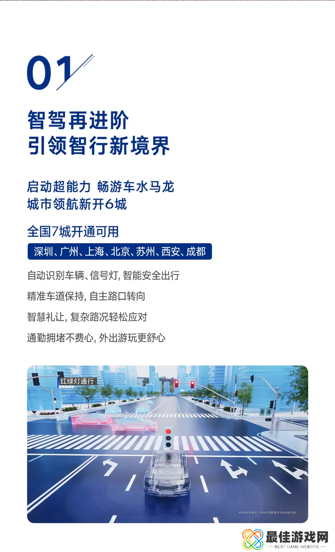 目前该车的城市领航智驾能力已在北京、上海、广州、深圳、苏州、西安、成都 7 城可用,支持自动识别车辆及信号灯、车道保持、自主路口转向、智慧礼让等功能。