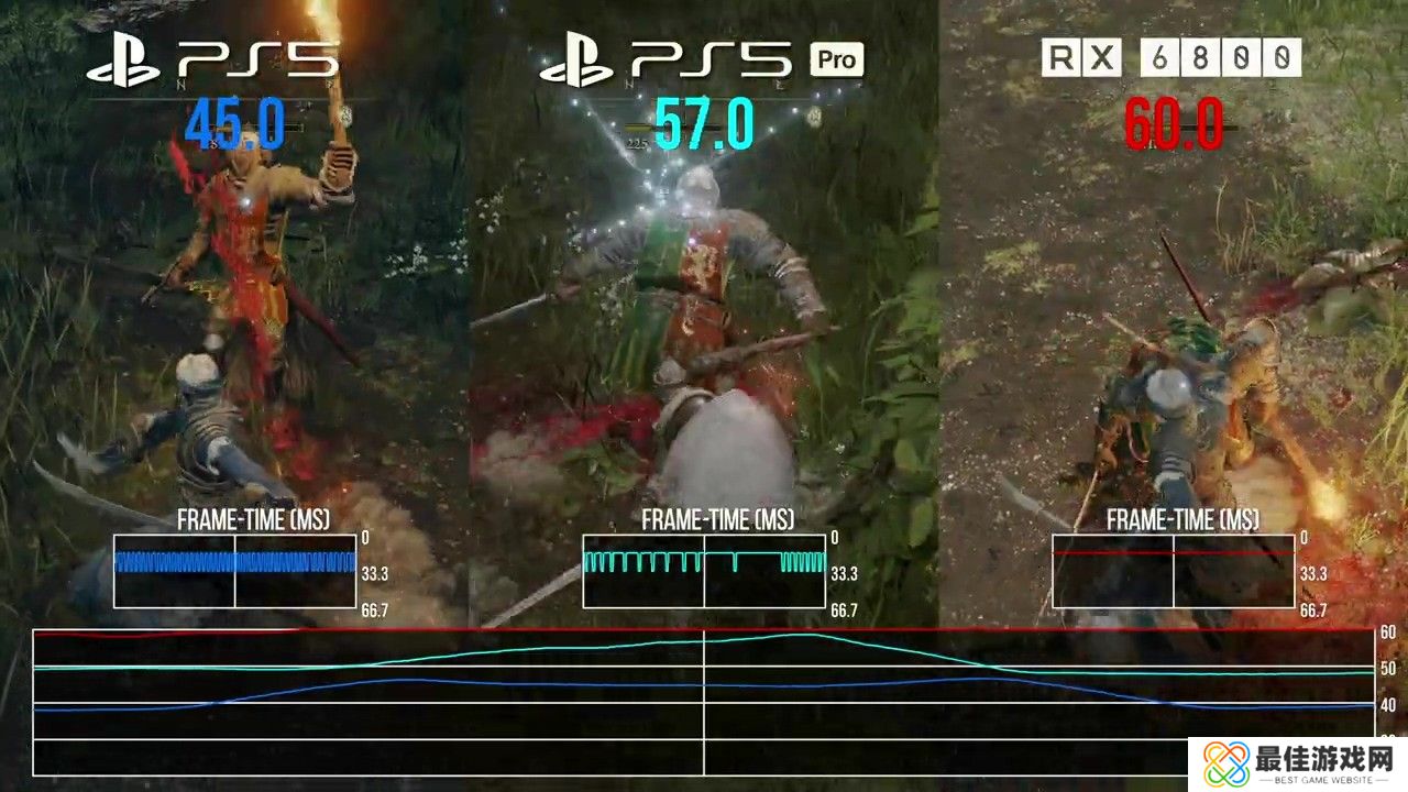 PS5 Pro的表现自然优于PS5,接近60FPS,但很难保持60fps,不时有帧数下降和卡顿情况。