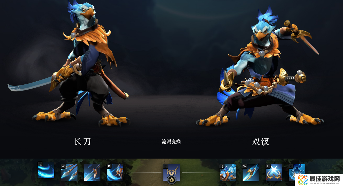 凯是一位能够切换武器的输出型角色,他的两把武器分别是长刀和双钗,而和另一位切换形态的角色巨魔战将一样,切换武器后,凯的技能组和被动也会随之改变。