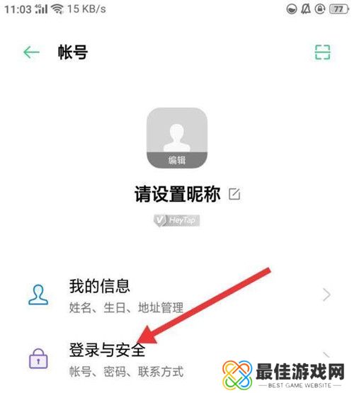 3、进入个人账号页面,点击下方登录与安全按钮。