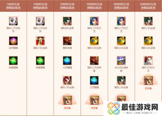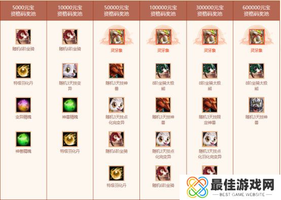 经典版玩家也有机会获得八阶坐骑灵牙象、八阶坐骑太极熊、随机六阶以及随机三天技变异、神兽等幸运大礼。