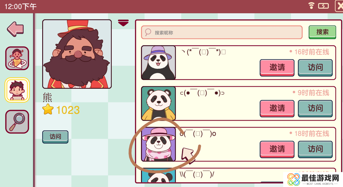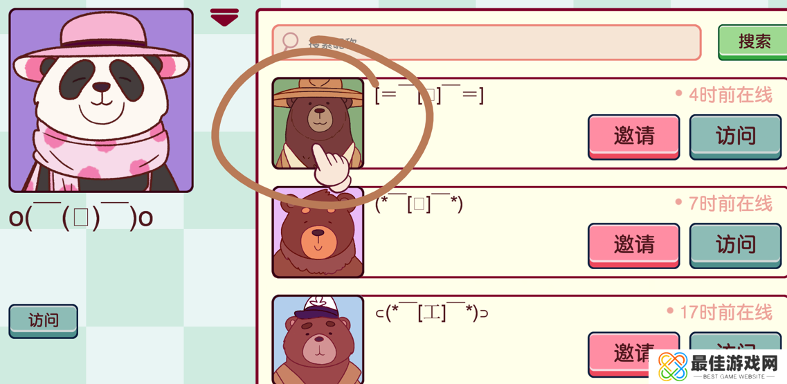 第二天波尔卡圆点熊会来,开始大型连续剧《人脉》,这次需要找带着园艺帽、喜爱整洁和线条的熊熊。点进波点粉熊熊的主页,可以找到园艺熊熊: