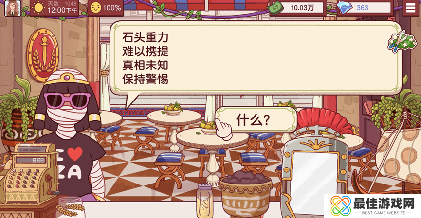 回店后拼好石碑。根据石碑上的图案提示,要进行封印需要冷冻技术,而之前欧阳提到过冷冻披萨,于是我们第二天拿着石碑去找欧阳博士。