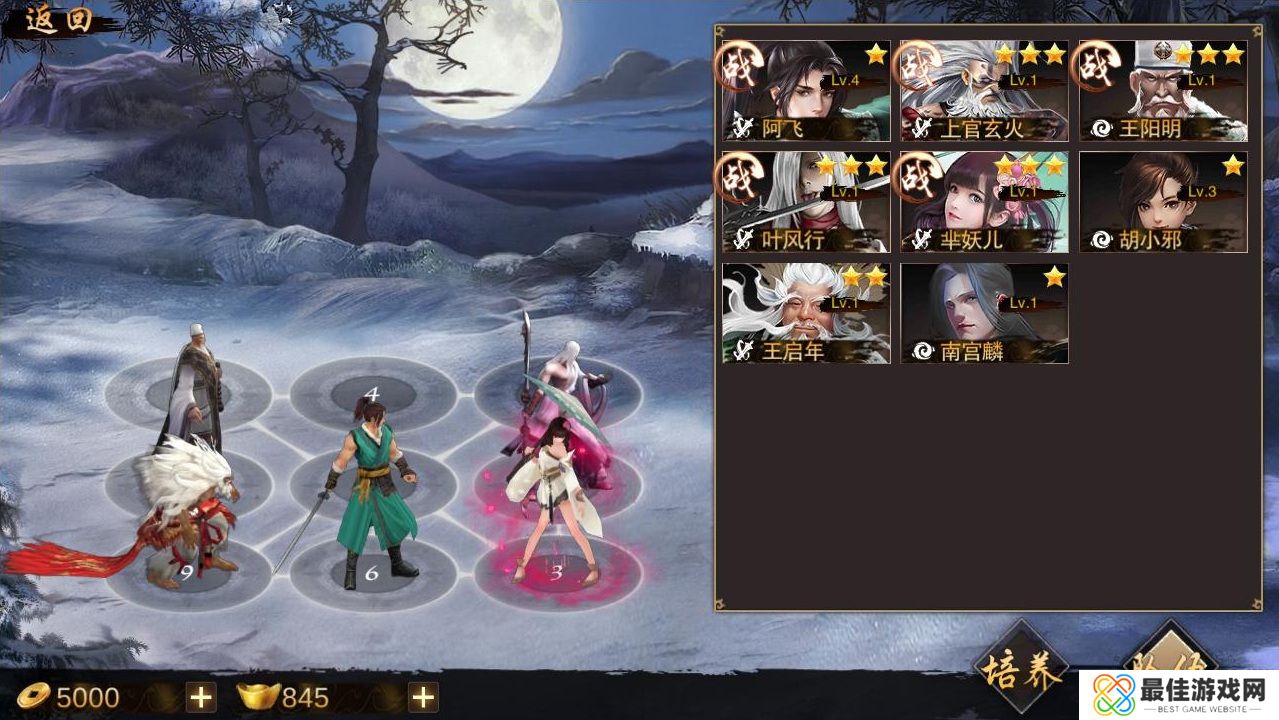 绝情窟:紫韵(奶)、王阳明(奶)、主角(31222)、胡老邪(输出)、空虚公子(输出),有孟更好能斩杀boss,扛不住主角12222纯奶,其他同上。