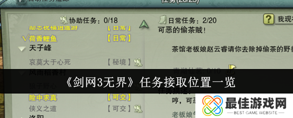 剑网3无界任务在哪接取?玩家刚开始进入剑网3无界游戏的时候,可以在任务栏里面看到很多主支线任务,点击任务跟随指引来到指定位置。但是大家也要知道还有部分任务是需要玩家自己去接取的,考虑到一些新手玩家不