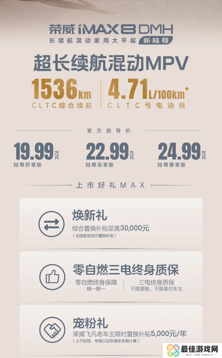 上汽荣威 iMAX 8 混动 MPV 上市:综合续航 1536km,19.99 万-24.99 万元