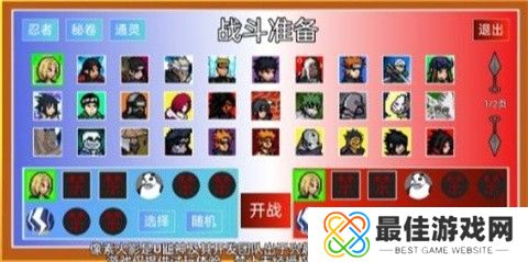 1. 角色选择:游戏提供了大量火影忍者中的角色供玩家选择,包括鹰佐、佐助、青水等经典角色,每个角色都有其独特的技能和特点,玩家可以根据自己的喜好进行挑选。