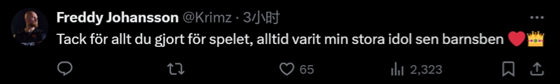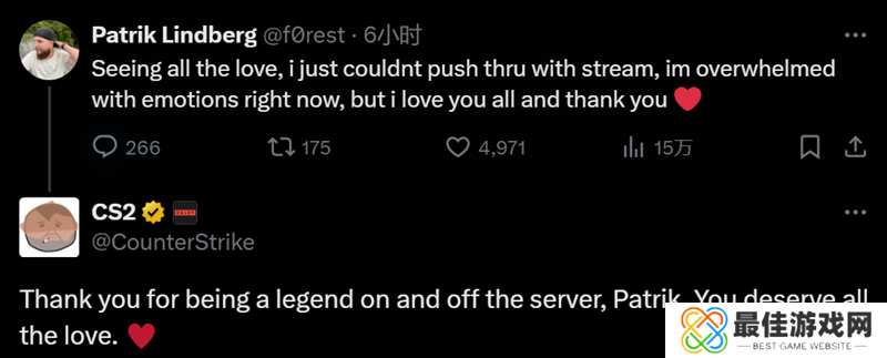 CS官方:感谢你成为游戏内外的传奇。Patrik,大家对你的爱你受之无愧于心。