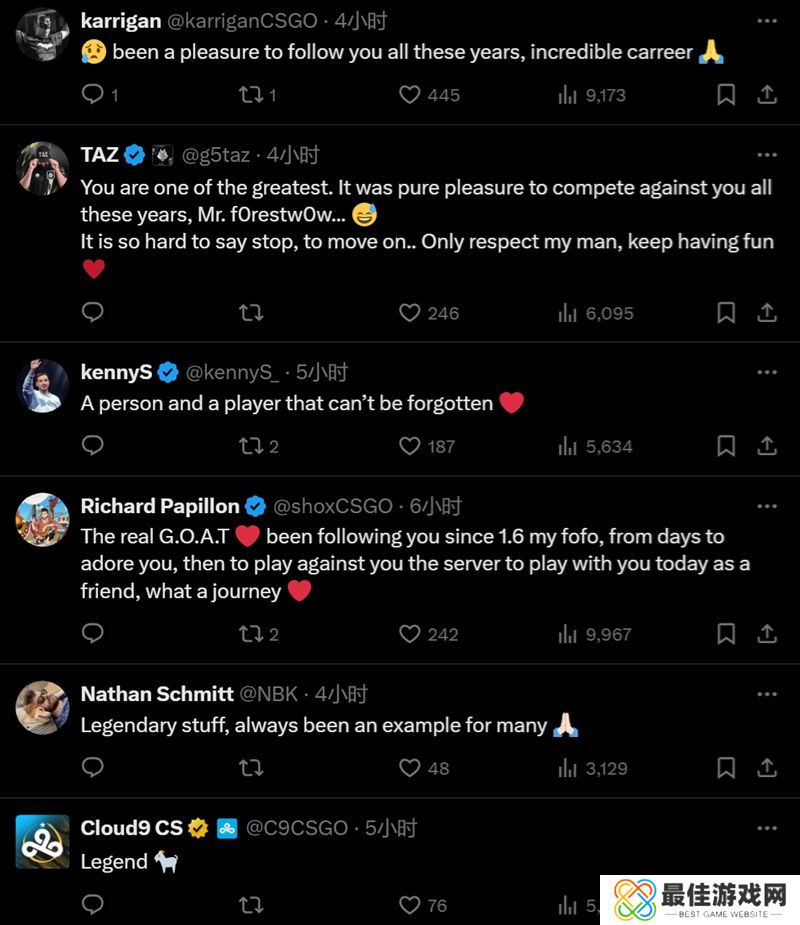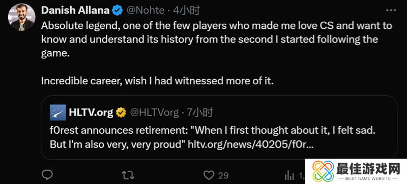 而在森林哥宣布退役之后,诸多社区人士纷纷在社交平台上表达自己对f0rest的敬仰之情,其中包括CS官方账号。一起看看f0rest宣布退役后的社区反应吧。