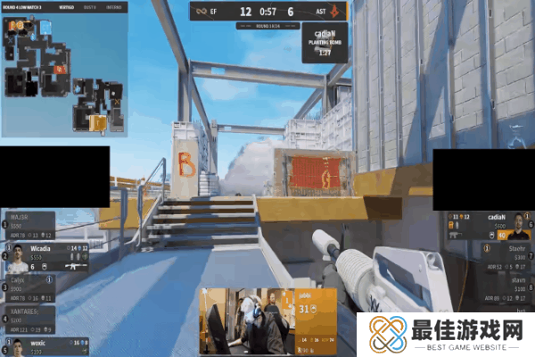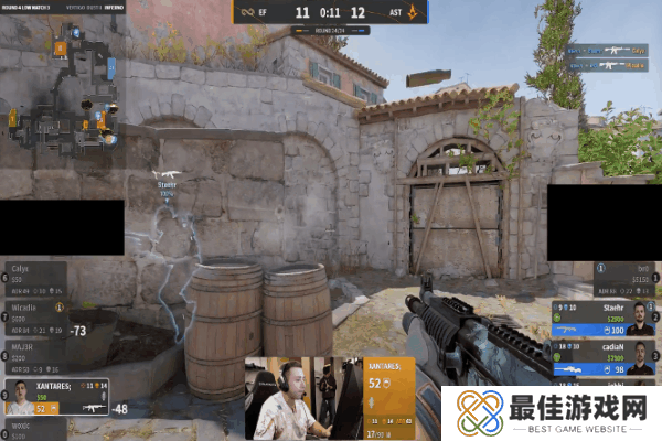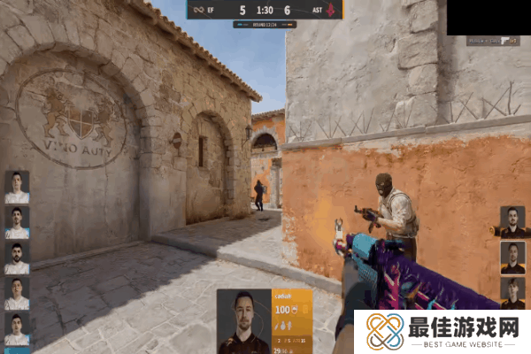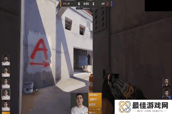 图三是决胜图小镇。上半场由A队作进攻方。手枪局进攻方从中路进攻,尝试送野榜哥在警家偷人,未果,随后几人从A1进攻,被交叉枪线防住,EF拿下手枪局。第二局A队强起,从后点爆弹进攻A点,jabbi在二楼成功接住反清的Calyx,A队顺势展开阵型,完成翻盘,比分1-1。EF不甘被翻,同样强起,在A1防住提速进攻的三人(点子哥又被tk了),jabbi和br0虽然都发挥良好,但仍惜败于最后的一打一,比分2-1。A队继续强起,jabbi侦察到EF离开A点的信号,A队调转枪头,爆弹提A又一次强起翻盘。EF有样学样,却被A队一波提速破点,打断了互相强起翻盘的节奏。一波强起不行那就两波——EF再次强起,完成翻盘。双方打的有来有回,却又异常和谐——长枪局A队拿分,强起局EF拿分,最终点子哥一波五杀将上半场比分锁定在5-7。