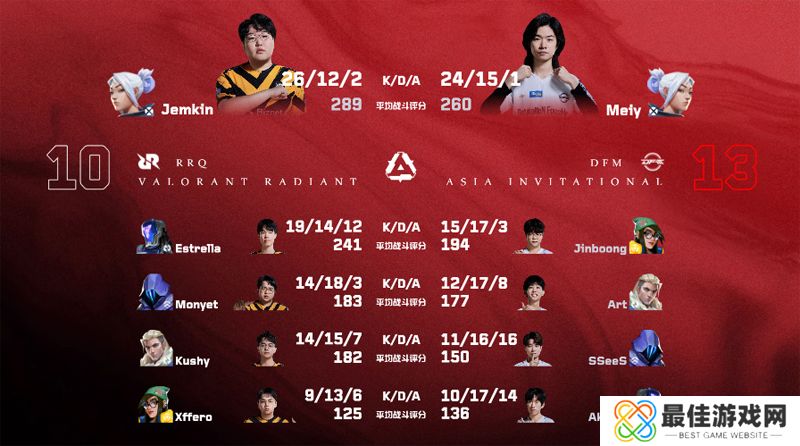 全场比赛的总比分RRQ 1-2 DFM(隐世修所13:9;深海明珠6:13;亚海悬城10:13)