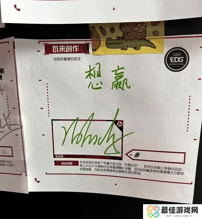 赛后,nobdoy写下对下一场比赛的期待:"想赢。"