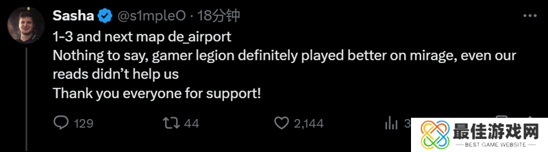 GamerLegion被淘汰。赛后s1mple分享了自己的感受。