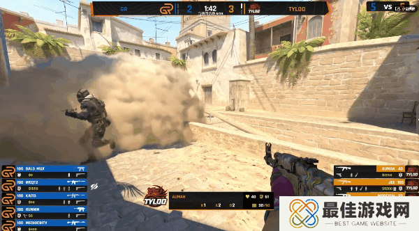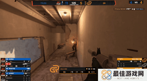 下半场GR来到进攻方,手枪局中路四人提A平推包点,回防的TYLOO凭借一颗烟雾直接强行拆包拿下胜利。次回合GR强起,双方先在中路打出二换二,随后GR想要转点A区,但是没有料到TYLOO已经前顶到匪家,最终GR再次输掉回合。TYLOO拿到11-4领先。