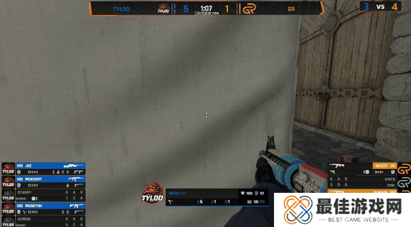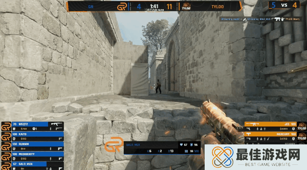来到长枪局GR想要拿到中路控制权,但是枪法不敌TYLOO导致自己进入人数劣势,尽管大坡的队友扳回人数,最终面对B区严阵以待的TYLOO也是没能拿下比分。上半场的TYLOO在防守方展现出强大的压制能立,面对枪法的劣势GR迟迟没能拿下分数,仅仅在第四回合依靠一波提B战术成功扳回一分。来到第十回合GR两人抢夺黑屋拿到双杀开局,随后顺势推进占领B包点,凭借人数优势成功扳回一分。次回合GR想要再次使用同样战术,但是进入包点后被Jee的大狙连接两人,TYLOO再次拿下胜利。上半场结束TYLOO拿到9-3领先。